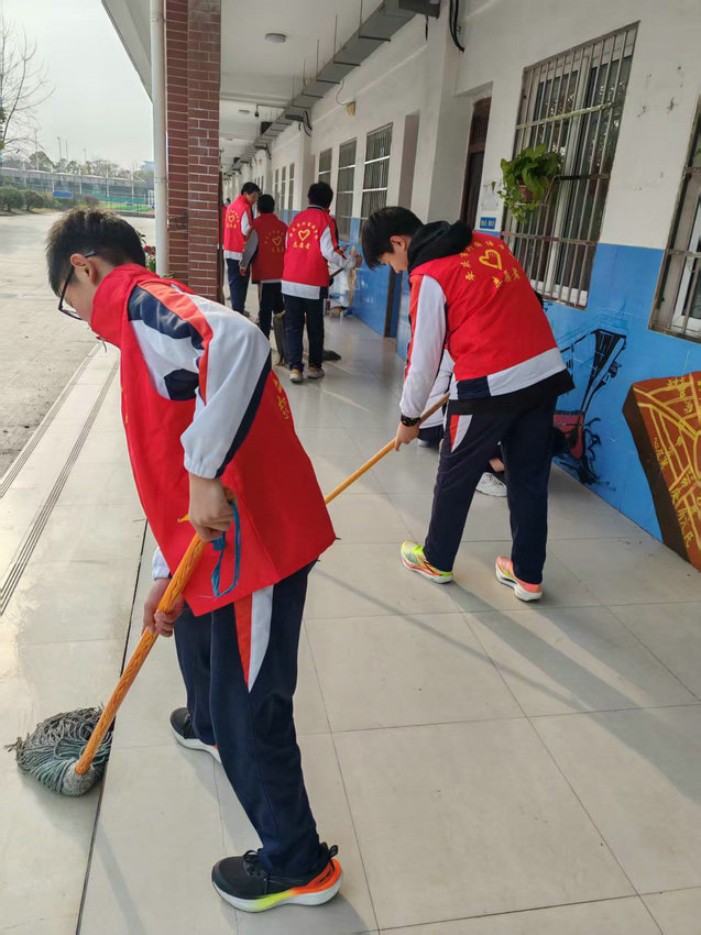 活动开始后,各志愿服务小队迅速集结、分工明确,以饱满的热情投入到服务中。同学们有的清扫校园主干道、楼梯口等关键区域;有的整理书架、归置书籍、擦拭灰尘;有的细心浇灌花草、修剪枝叶。同学们热情高涨、认真负责,用双手美化校园环境,用实际行动诠释着志愿者的责任与担当。一个个忙碌的身影、一张张认真的脸庞,成为校园中最动人的风景。