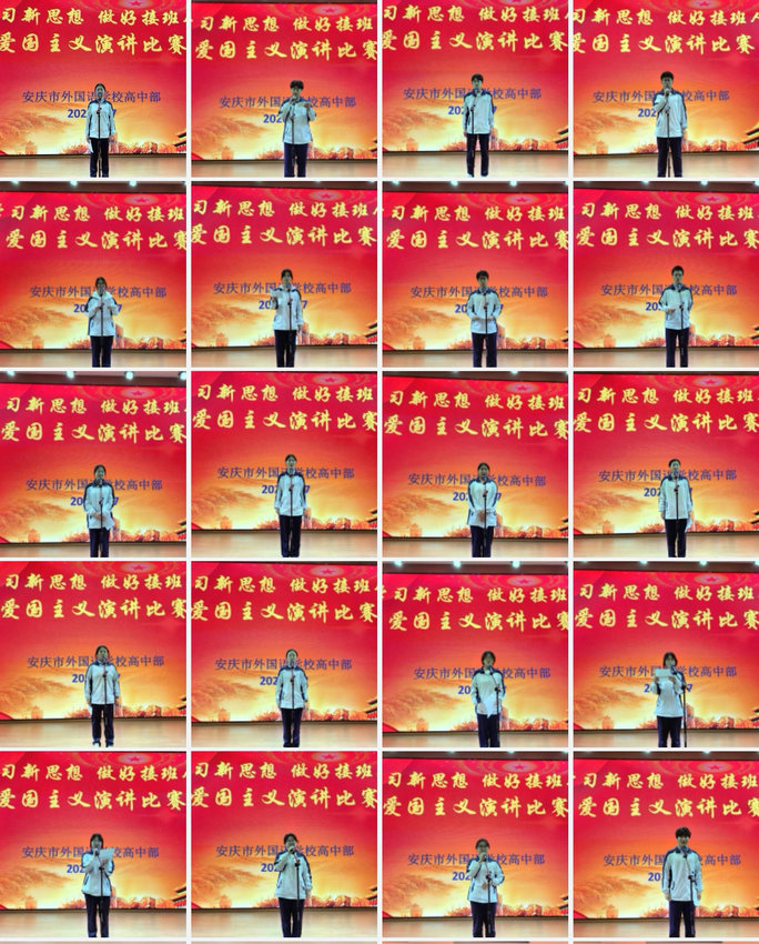 为深入学习贯彻习近平新时代中国特色社会主义思想,落实“学习新思想 做好接班人”主题教育活动要求,厚植学生家国情怀,引导青少年坚定理想信念、勇担时代使命,4月7日下午,安庆市外国语学校高中部语文组精心组织的“学习新思想 做好接班人”爱国主义演讲比赛校内选拔赛,在学校报告厅圆满举行。本次比赛由高中部语文组教研组长陈旺华老师担任主持人,语文组多位骨干教师担任评委,来自高一、高二年级各班的学生代表同台竞技,以青春之声抒发爱国热忱。