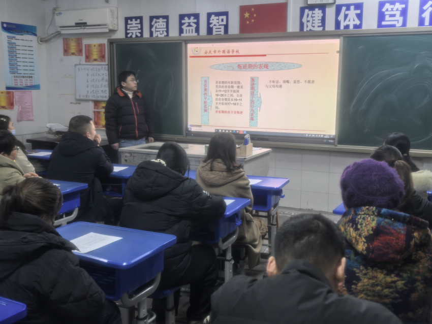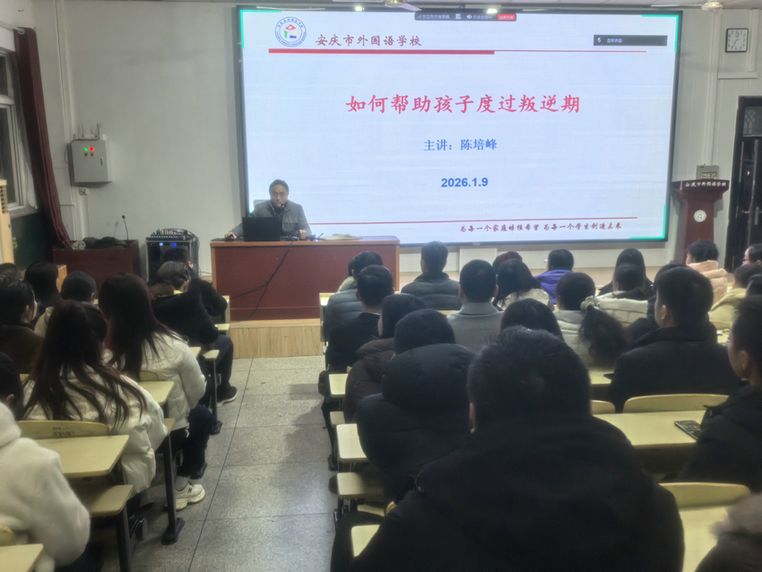 为增进家校沟通,共同探寻青春期教育良方,我校西区于2026年1月9日下午在报告厅成功召开了八年级家长会。本次会议以“如何帮助孩子度过叛逆期”为核心,聚焦青春期成长话题,旨在凝聚家校共识,助力学生平稳度过成长关键期。