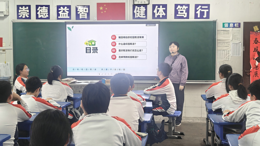 班会中,班主任结合精心制作的课件,依次展开四大模块教学。首先展示触目惊心的校园欺凌真实案例,以直观的视频画面和数据,让学生直观感受欺凌带来的身心伤害;随后清晰界定校园欺凌的内涵,区分肢体、语言、社交及网络欺凌等不同类型,打破学生对 “欺凌只是打闹” 的错误认知;重点讲解面对欺凌的应对方法,指导学生遭遇欺凌时勇敢说 “不”、及时求助,目睹欺凌则不做冷漠旁观者,主动制止或上报;最后围绕预防校园欺凌展开讨论,引导学生从自身做起,尊重他人、友善相处。