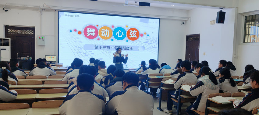 1月6日下午第二节课,201班音乐教室乐声悠扬、暖意融融,张晖老师执教的《中国舞蹈音乐》公开课如约启幕。高中部江生友主任、徐海宏主任,吴汉文、杨良峰、汪震三位体育老师莅临观摩指导,201班全体同学齐聚一堂,共赴这场浸润心灵的艺术盛宴。