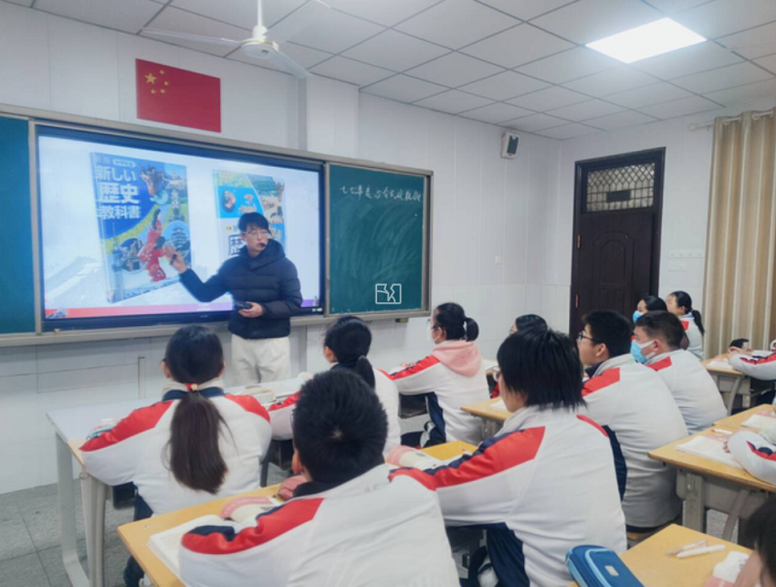 历史组李星老师在西区教研活动室开设教研公开课,校领导、初中部西区全体历史教师全程参与听课。本次授课内容为《七七事变与全民族抗战》,针对课程历史意义厚重、理解难度较大的特点,李老师以“烽火·觉醒·团结”为主线设计教学,通过影像史料、情境思辨、动态地图等创新形式突破重难点。课堂上师生互动深入,有效引导学生感悟英烈精神、铭记抗战历史。课后组内教师围绕教学设计、素养培育等议题展开研讨,教研氛围浓厚,有效促进了组内教学经验交流。