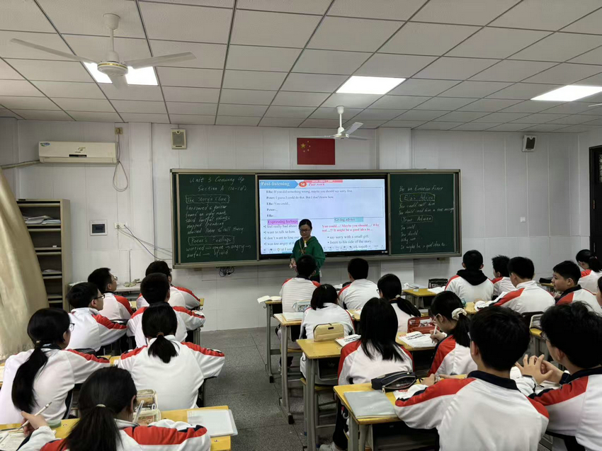 课堂上,严老师紧扣“情绪管理与人际冲突解决”主题,以“成为情绪修复者”为核心主线,设计了层层递进的教学环节:从情绪词汇导入、情境游戏热身,到听力任务分层推进,再到对话创编与深度思辨,既落实了“听懂冲突经过、梳理情绪变化”的语言目标,又渗透了“冲突中双方都可能犯错,要主动修复关系”的情感态度目标,课堂互动充分,重难点突出,充分展现了新课标理念下的听说课教学范式。