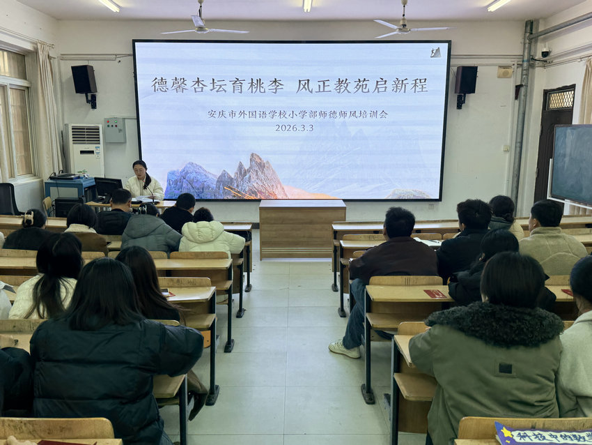 律回春晖渐,万象始更新。2026年3月3日,安庆市外国语学校小学部全体教师齐聚一堂,隆重召开2025—2026学年度第二学期开学工作大会暨师德师风培训会。