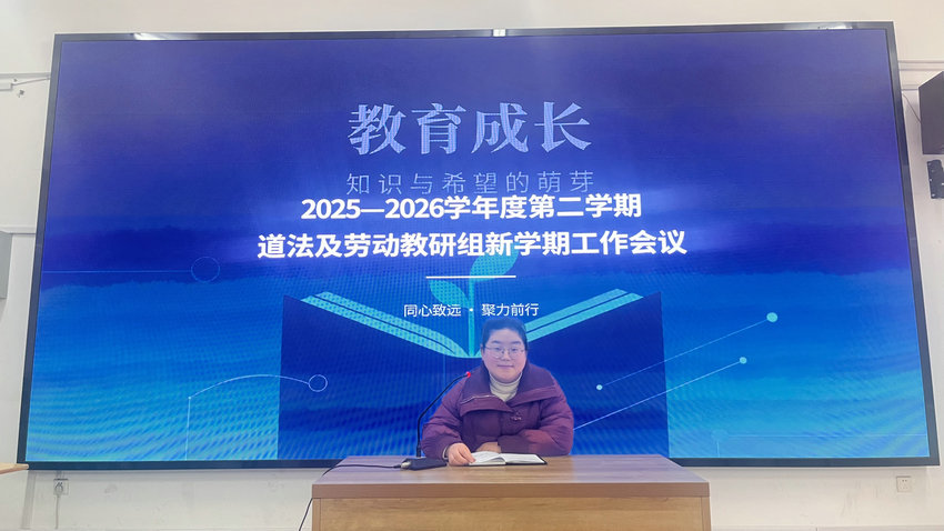 会上,教研组长杨钰老师明确了本学期工作重点将围绕新课标解读、教材重难点分析、集体备课安排、课堂教学创新等内容展开教学研讨,并希望老师们交流教学思路,分享育人经验,以生活为载体、以素养为导向,打造生动、实效的道法课堂。
