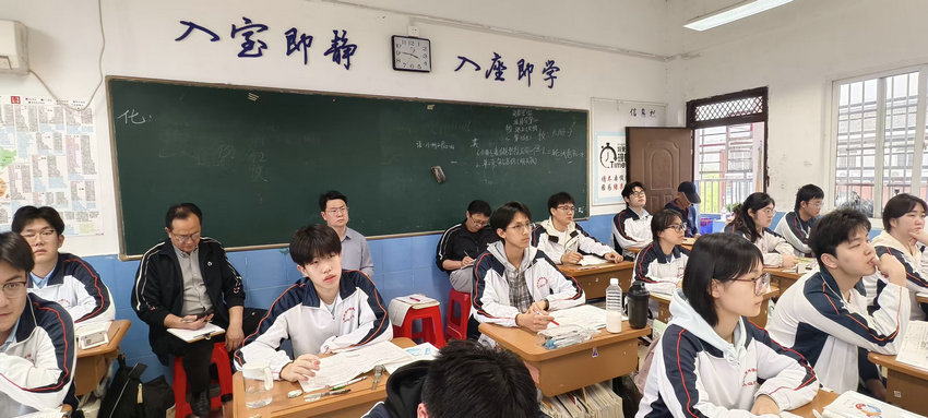 4月13日下午第三节课,我校高中部教学督导工作扎实推进。肖清克副校长、徐最太校长助理,高中部江生友副主任、朱炎炎副主任,高三数学备课组长金毅老师一行深入303班,开展常态化“推门听课”,实地观摩汪南老师高三数学试卷讲评课,精准把脉高三数学备考课堂实效。