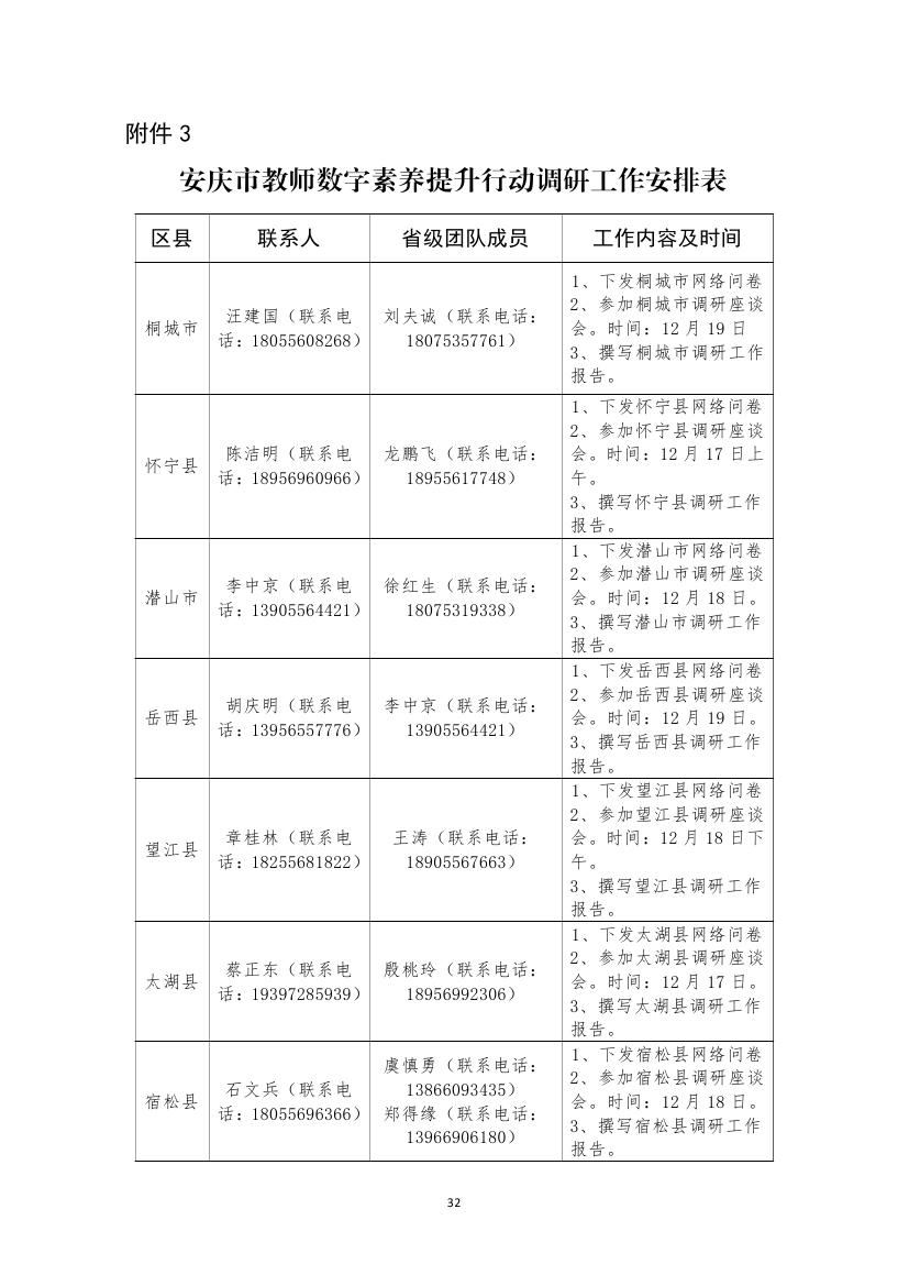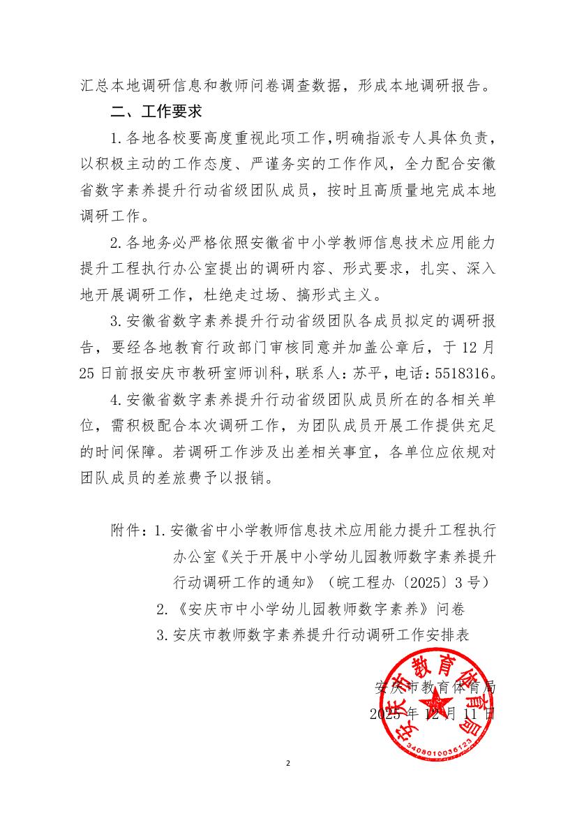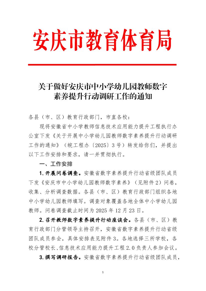 关于做好安庆市中小学幼儿园教师数字素养提升行动调研工作的通知