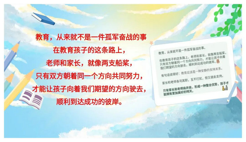 讲座伊始,路飞老师以“教育从来不是孤军奋战”为核心观点切入,将教师与家长形象地比作推动孩子成长的“两支船桨”,深刻阐释了家校双方目标同向、行动同频对于学生成长成才的重要意义,强调唯有家校携手、凝聚合力,才能为孩子的成长之路保驾护航。