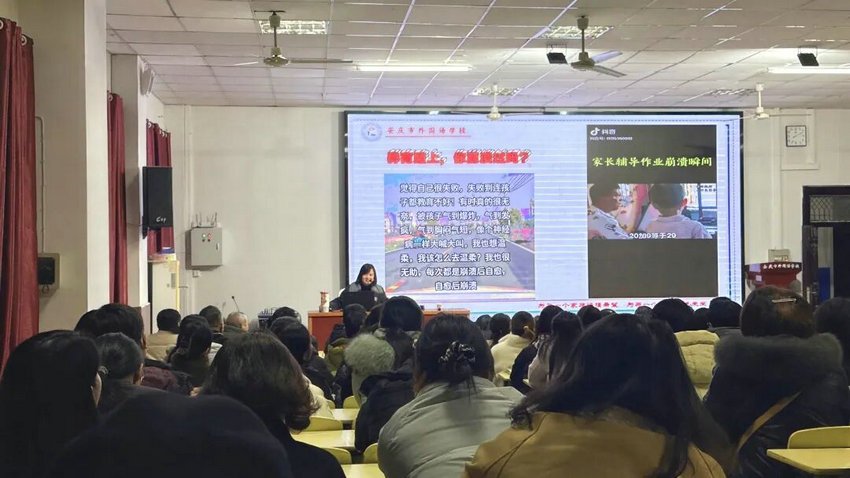 为进一步深化家校协同育人理念,搭建家校沟通的坚实桥梁,2026年1月16日,初中部西区2025级家长学校第三期讲座在学校一楼报告厅圆满举行。本次讲座以“用爱绘未来,用心护当下”为主题,由路飞老师担任主讲人,围绕亲子沟通、拖延问题应对、成绩理性看待及养育倦怠缓解等关键议题展开分享,为在场家长奉上了一场兼具理论高度与实践指导意义的教育专题课程。