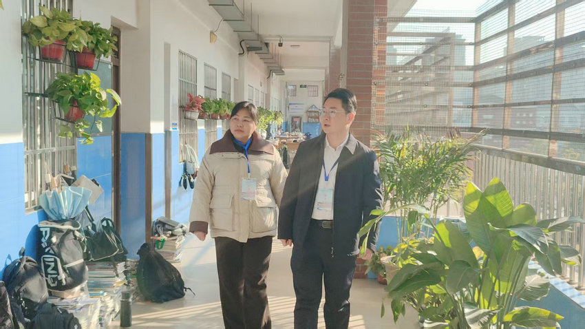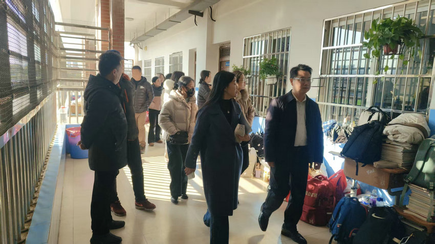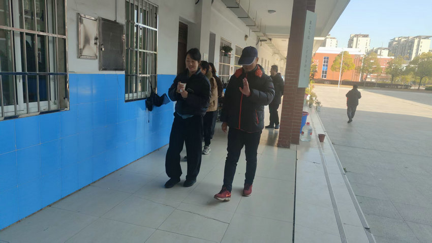 随后,在带队领导的引导下,家长巡考团从教学楼一楼出发,沿楼梯逐层上行,依次巡查各年级考场。巡考过程中,一行人轻步缓行、轻声驻足,透过教室门窗细致检视考场状况:场内考生坐姿端正、专注作答,笔尖划过试卷的 “沙沙” 声清晰可闻;监考教师坚守岗位、规范履职,时而轻声提醒考生规范填涂答题卡,时而细致核查考生信息,整场检测秩序井然。每到一层,带队领导都会向家长详细解读该楼层的考务配置细节,涵盖监考分工、应急处置流程等关键内容,让家长全面了解学校考务工作的规范化水平。“跟着领导逐层巡查,看到每间教室秩序井然、监考老师认真负责,我们心里格外踏实。” 一位家长代表一边在巡考记录单上详实记录,一边由衷感慨。