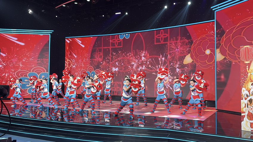 孩子们身着蓝红相间的演出服,手擎红狮头灵动起舞,将传统南狮的神韵与少年的蓬勃朝气完美融合。萌趣的翻转动作活力满格,传统舞狮元素与现代舞蹈编排巧妙结合,既焕活了中华优秀传统文化的新生命力,更以灵动舞姿为本次教体系统春晚绘就了一抹鲜活亮丽的色彩。