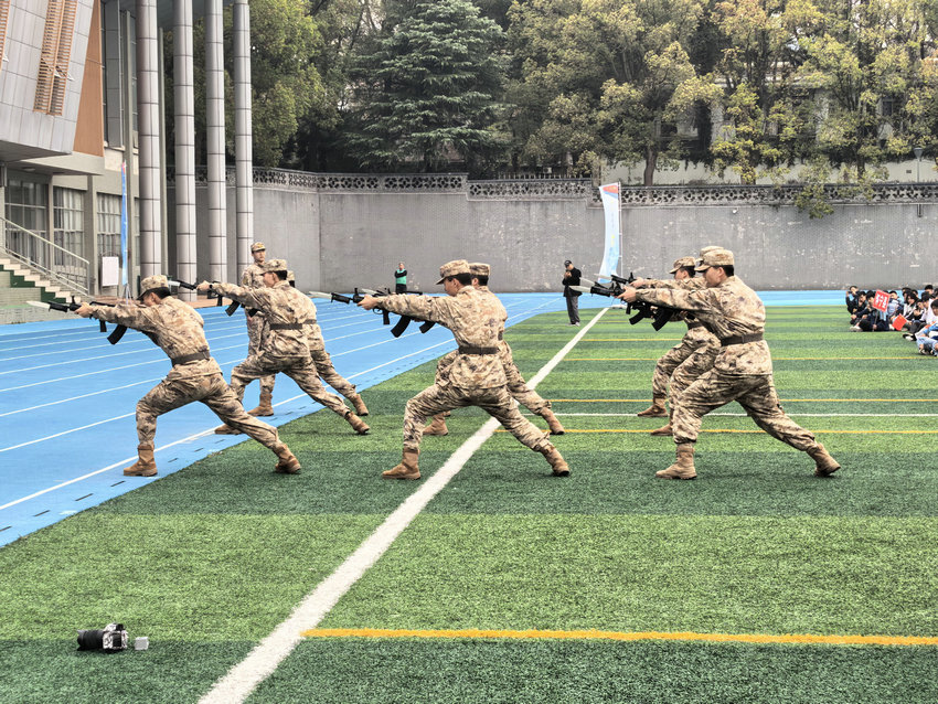 本次活动内容丰富、形式多样,集国防教育、技能展示、体验互动、招生咨询于一体,为学子们带来了一堂沉浸式、实景化的国防教育思政课。活动现场,海军工程大学仪仗队的队列展示整齐划一、气势如虹,尽显军人风采;蛟龙特战队俱乐部的班组战术演练、捕俘夺刃等格斗科目展示,动作刚劲有力、配合默契十足,让现场师生直观感受军人的过硬本领与战斗素养,赢得阵阵掌声。