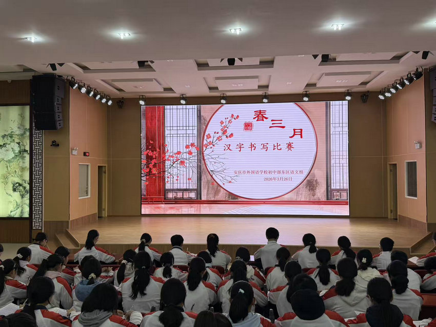 春风拂槛,墨香满园。3月26日清晨,当第一缕晨光洒向校园,安庆外国语学校初中部(东区)的报告厅内,来自七、八年级各班的“书写能手”们齐聚一堂,参加以“春三月”为主题的汉字书写比赛。