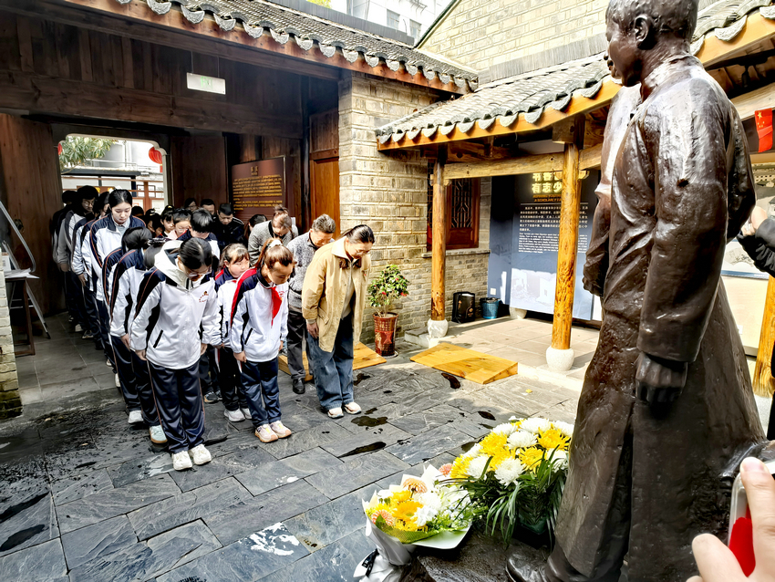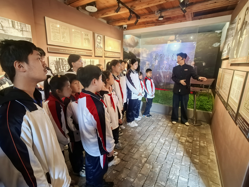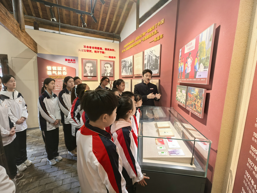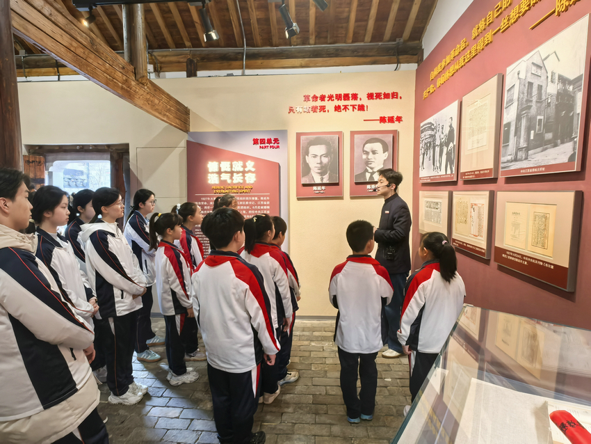 活动现场,师生们怀着崇敬与肃穆的心情,整齐列队,向革命先烈默哀致敬,表达对先烈的深切缅怀与无尽哀思。随后,大家缓步走进读书处内,认真聆听讲解员的生动讲述,通过一幅幅珍贵的历史照片、一件件承载岁月记忆的文物、一段段感人至深的革命故事,全面了解陈延年、陈乔年烈士从少年求学、追求真理,到赴法勤工俭学、坚定革命信仰,直至英勇就义的光辉一生。