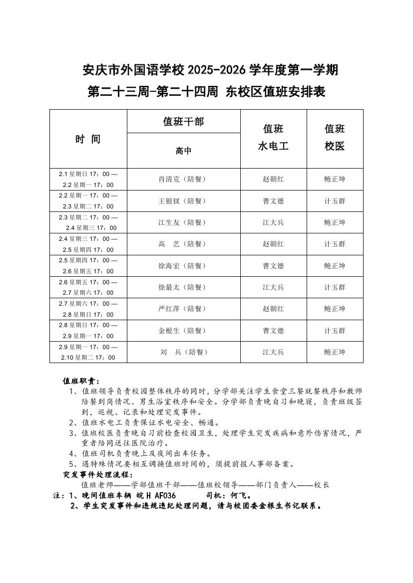 2025-2026学年度第一学期第二十三周-第二十四周东区干部值班表