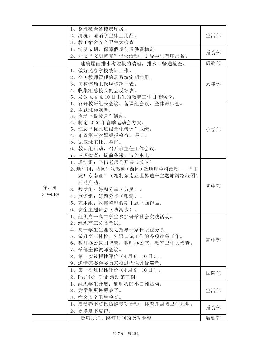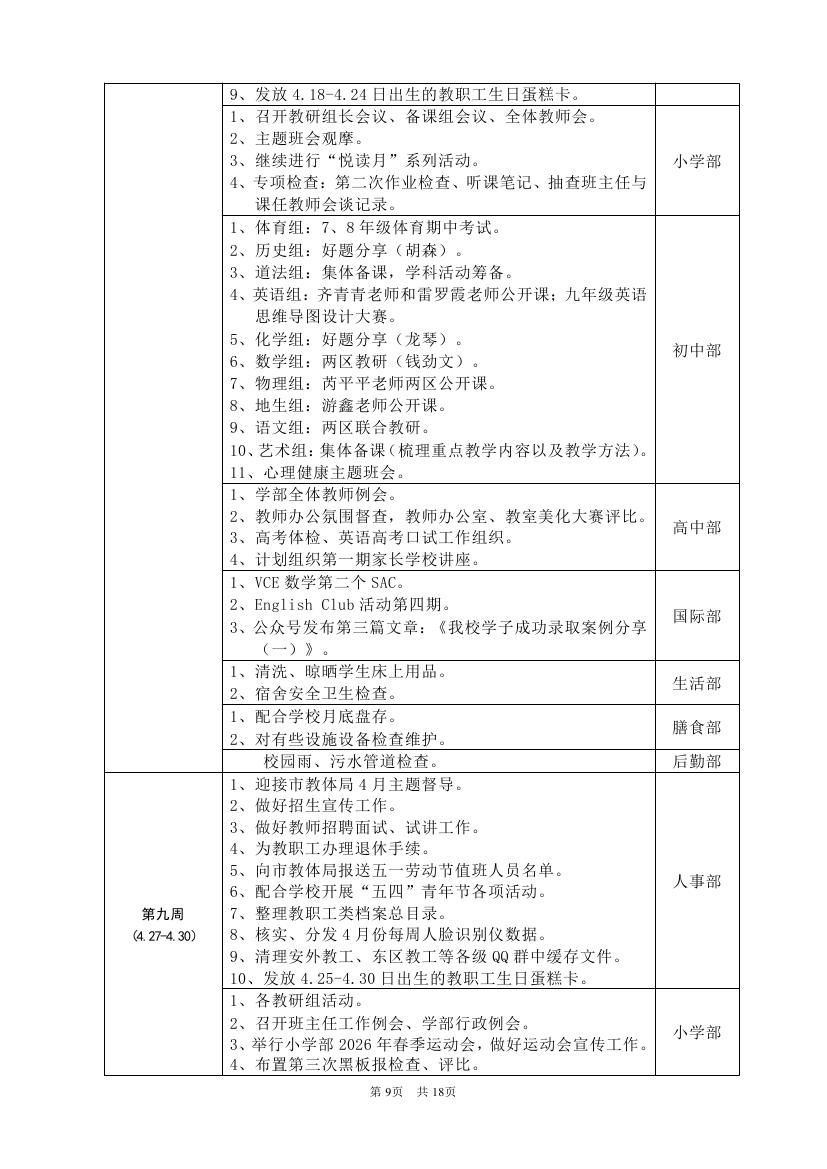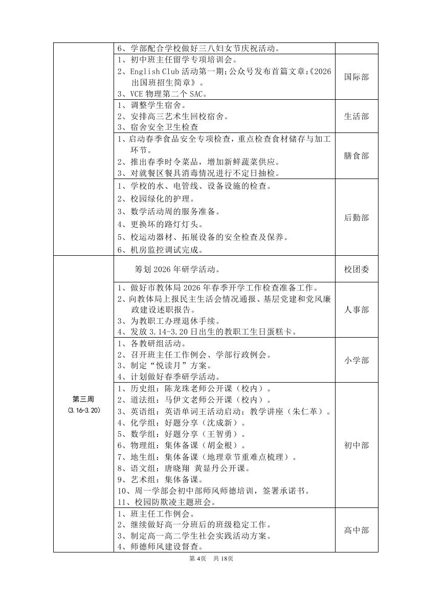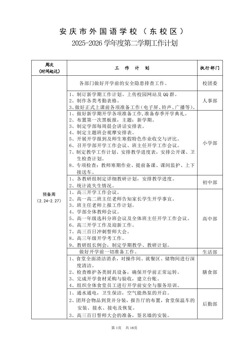 2025-2026学年度第二学期工作计划(东区)