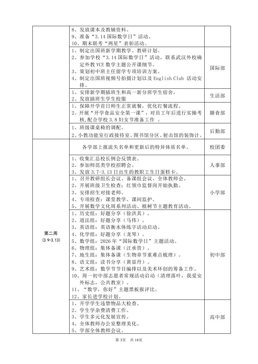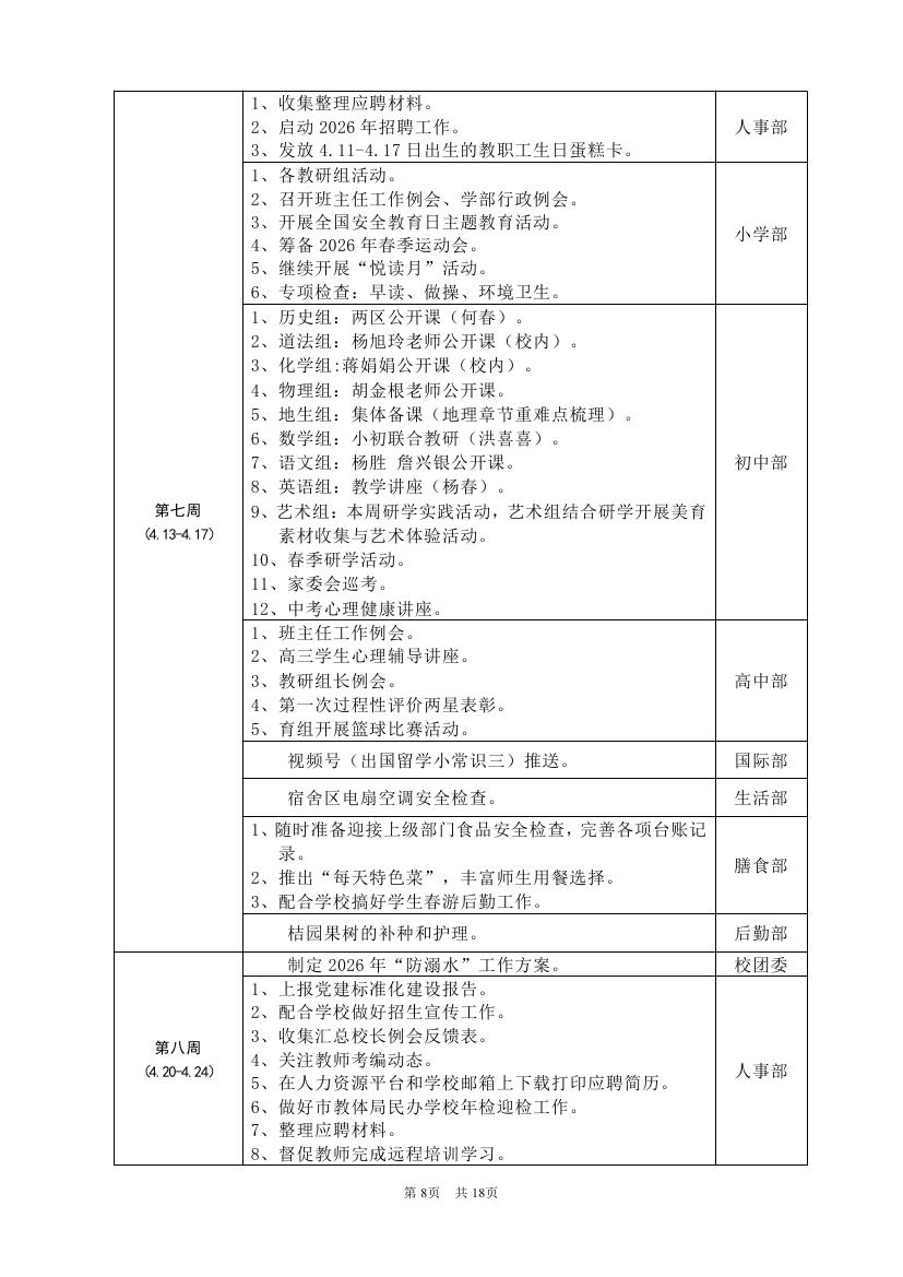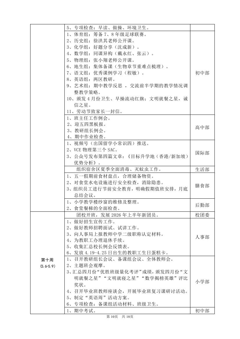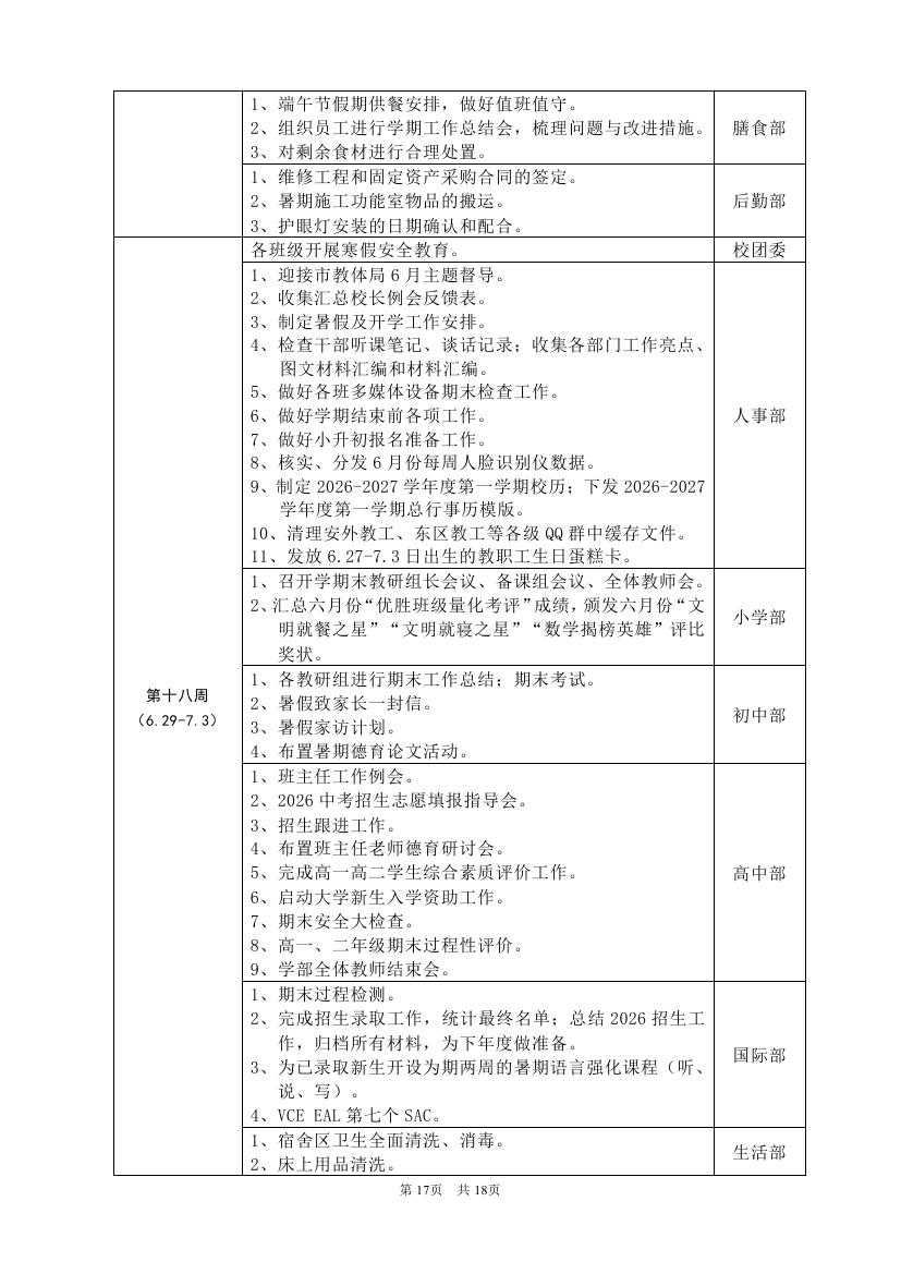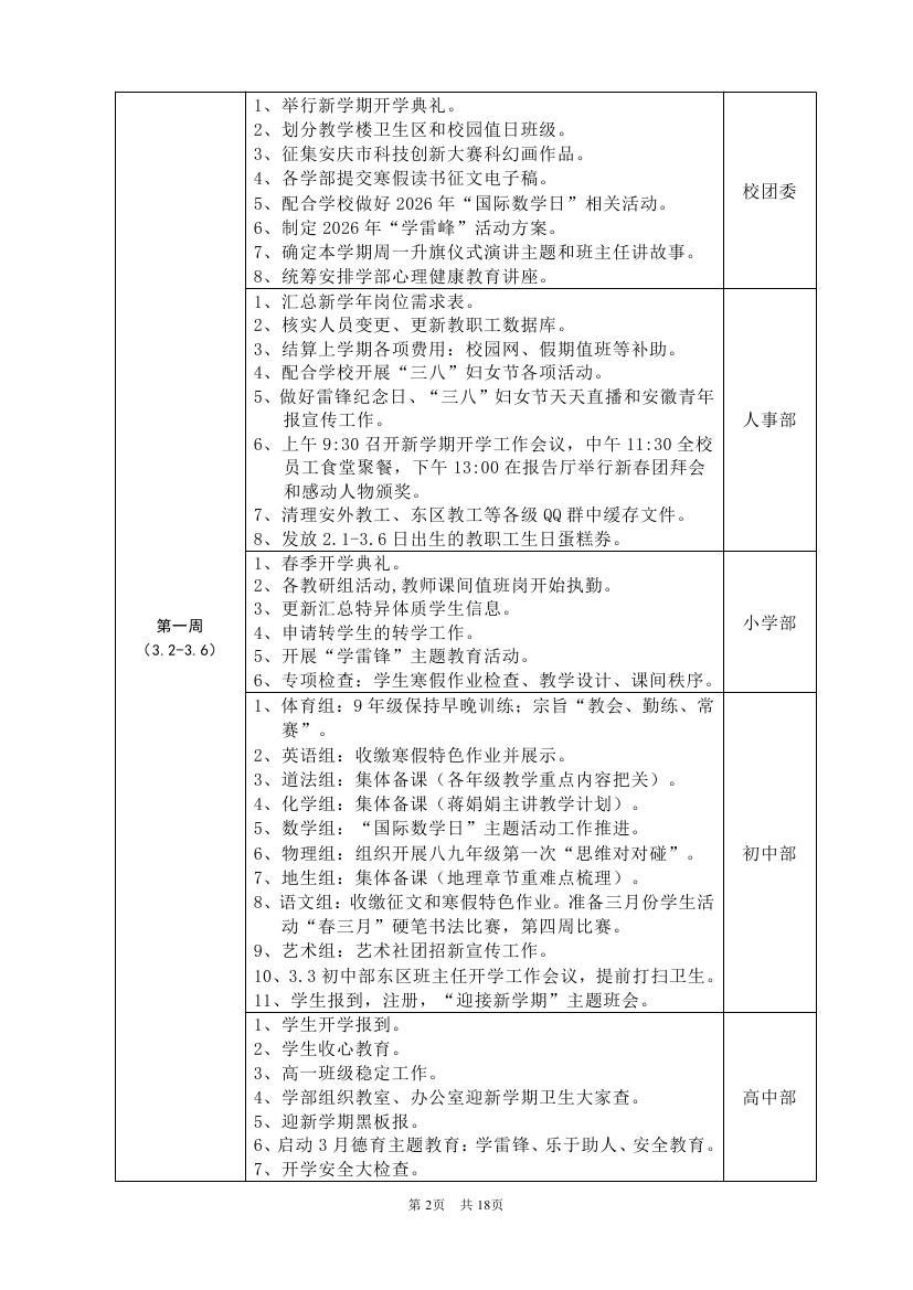 2025-2026学年度第二学期工作计划(东区)