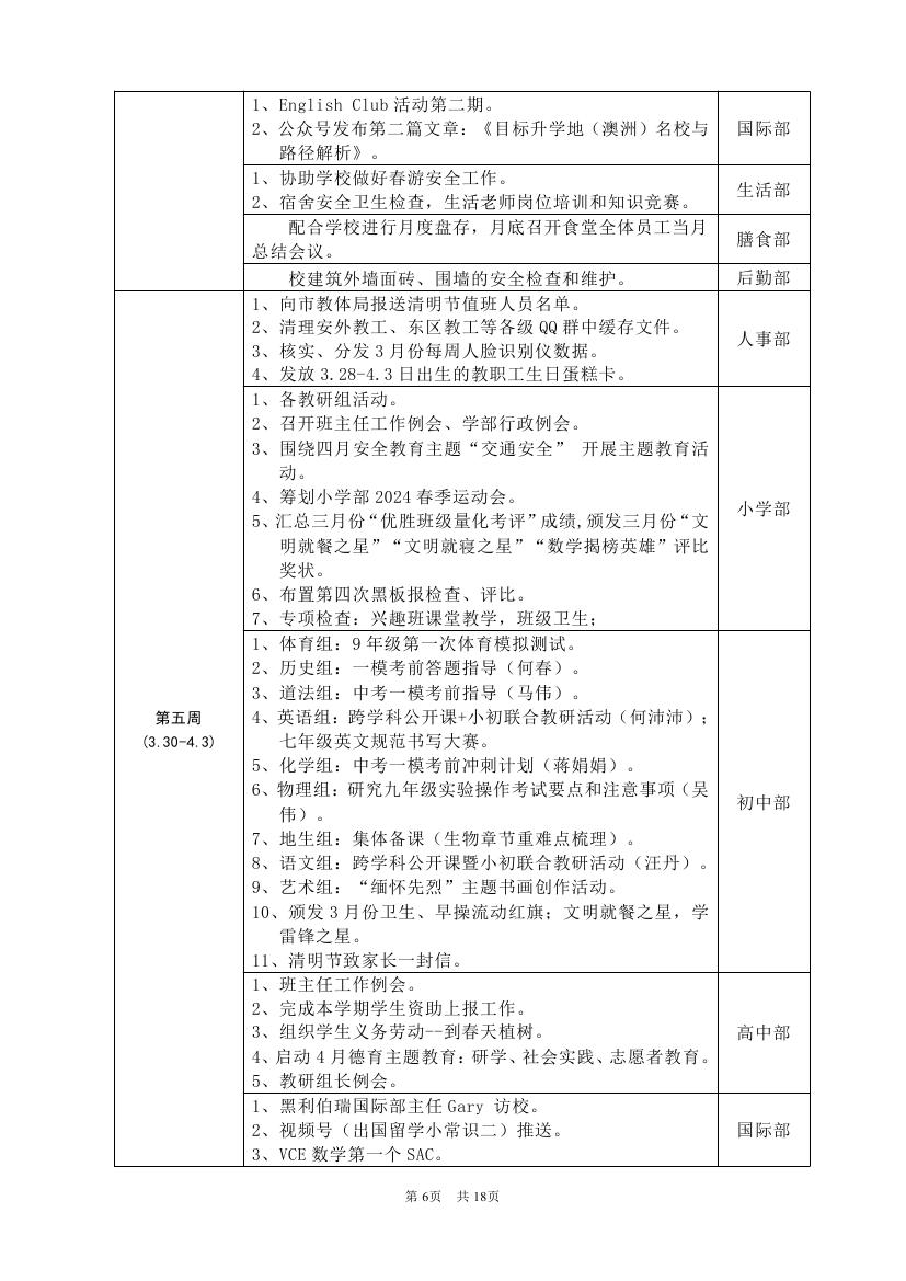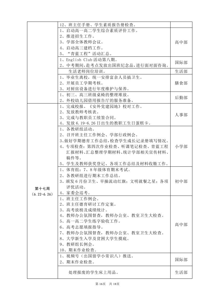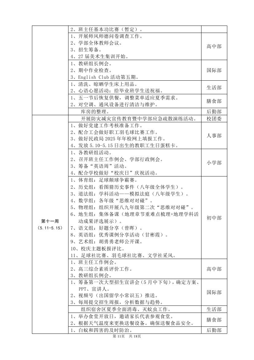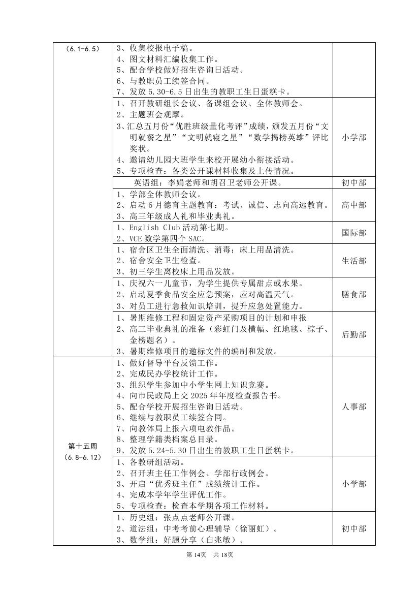 2025-2026学年度第二学期工作计划(东区)