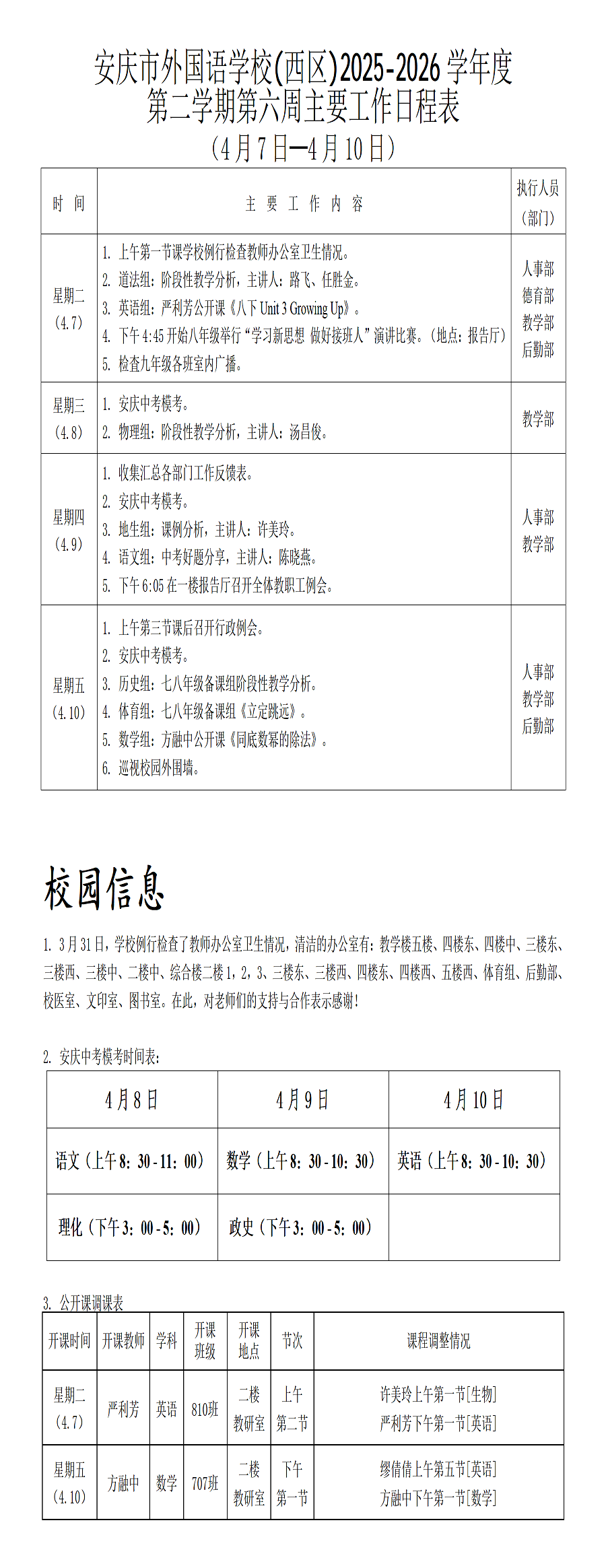 2025-2026学年度第二学期第六周行事历(西区)