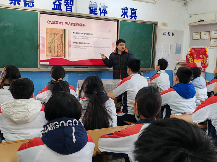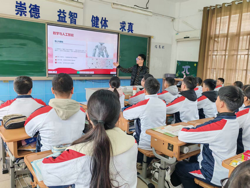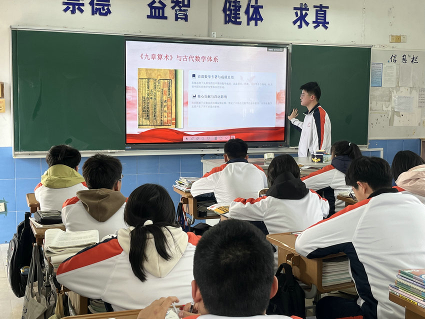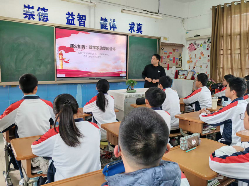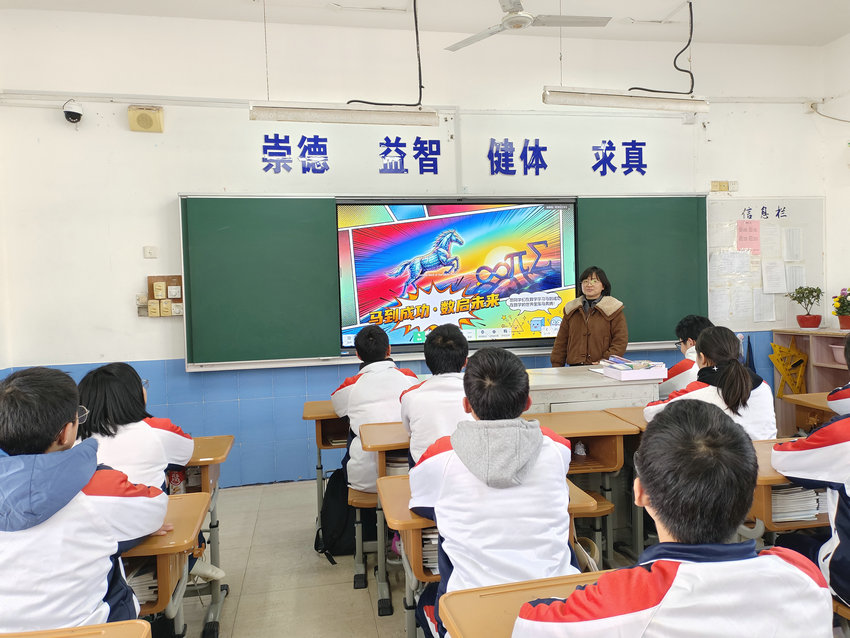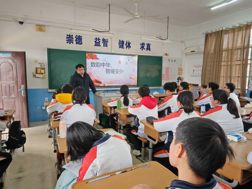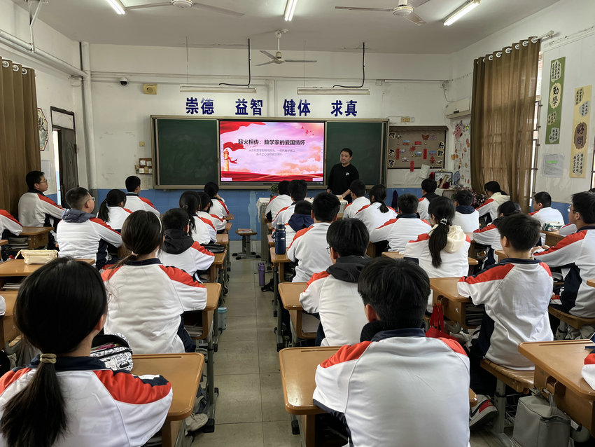 班会在轻松热烈的氛围中拉开序幕。各班班主任通过趣味数学故事、精彩科普短片与生动案例讲解,带领同学们走进奇妙的数学世界。从祖冲之精确计算圆周率,到华罗庚、陈景润等数学家潜心钻研、为国奉献;从生活中的购物计算、图形设计,到科技领域的航天工程、人工智能,同学们深刻认识到数学不仅是严谨的公式与运算,更是推动科技进步、助力国家发展的重要力量。