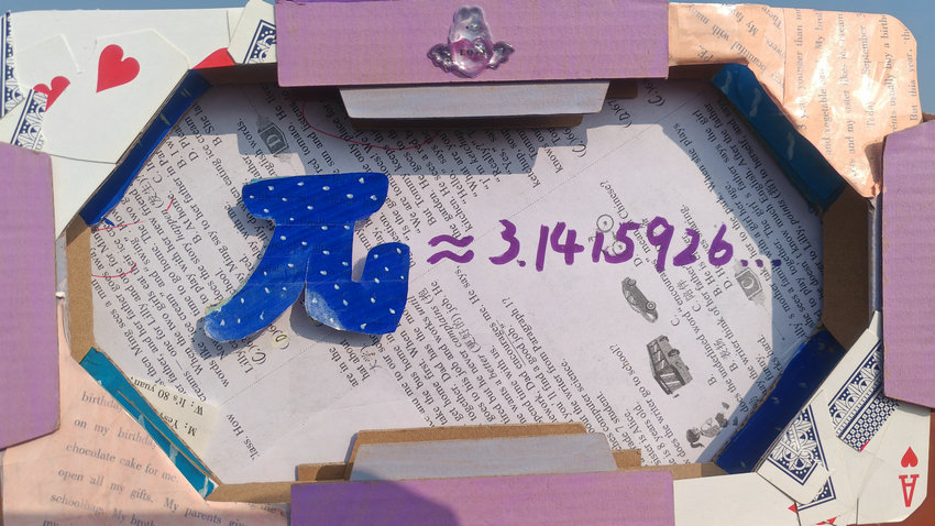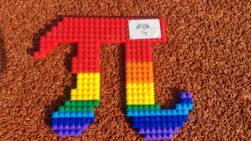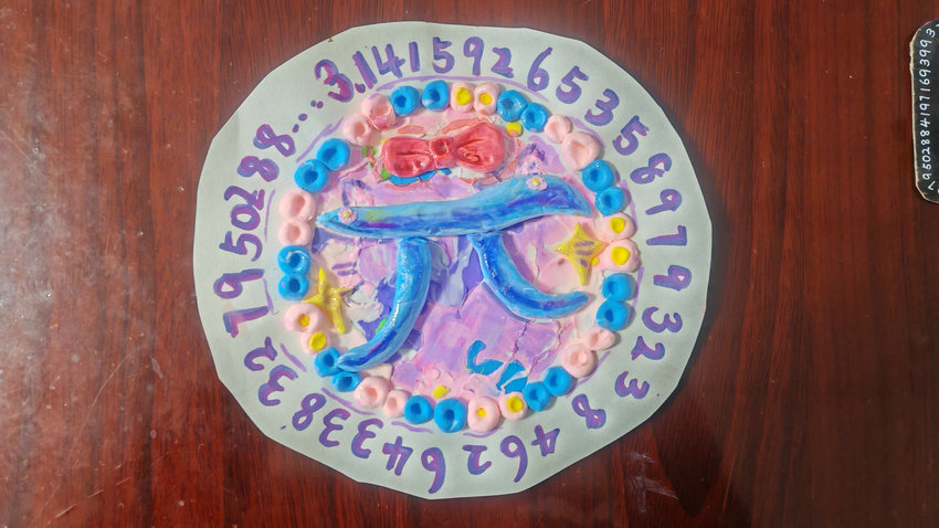 本次展览中,同学们以圆周率符号“π”为核心灵感,运用彩泥、麻绳、乐高、废旧纸板等丰富材料,创作出形态各异的艺术作品:有的将π塑造成憨态可掬的卡通形象,有的用彩虹积木拼搭出立体符号,还有的在作品旁标注π的近似值,让数学概念与艺术表达巧妙融合。一件件充满巧思的作品,既展现了同学们对数学知识的理解,也传递着对科学与艺术的热爱。