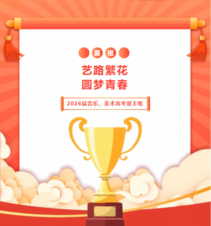 每一份成绩,都是日夜坚守的画室里不灭的灯,是琴房里反复打磨的旋律,更是汗水与才华的共同结晶。在此,向所有取得优异成绩的同学致以热烈祝贺!向辛勤付出的专业教师表示诚挚谢意!向长期以来支持和配合学校工作的各位家长表示衷心的感谢!我校高中部将继续深耕艺术教育沃土,为学子搭建优质成长平台,助力更多艺术追梦人圆梦理想学府!