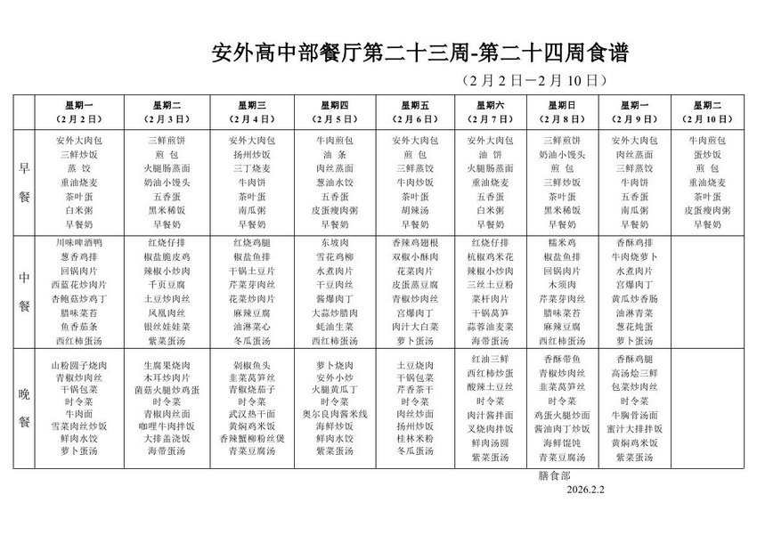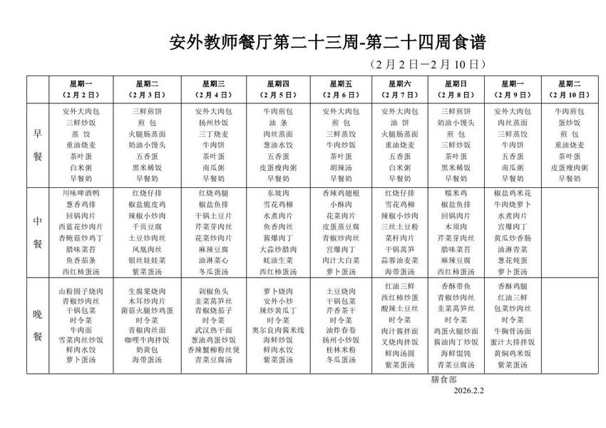 2025-2026学年度第一学期第二十三周-第二十四周食谱