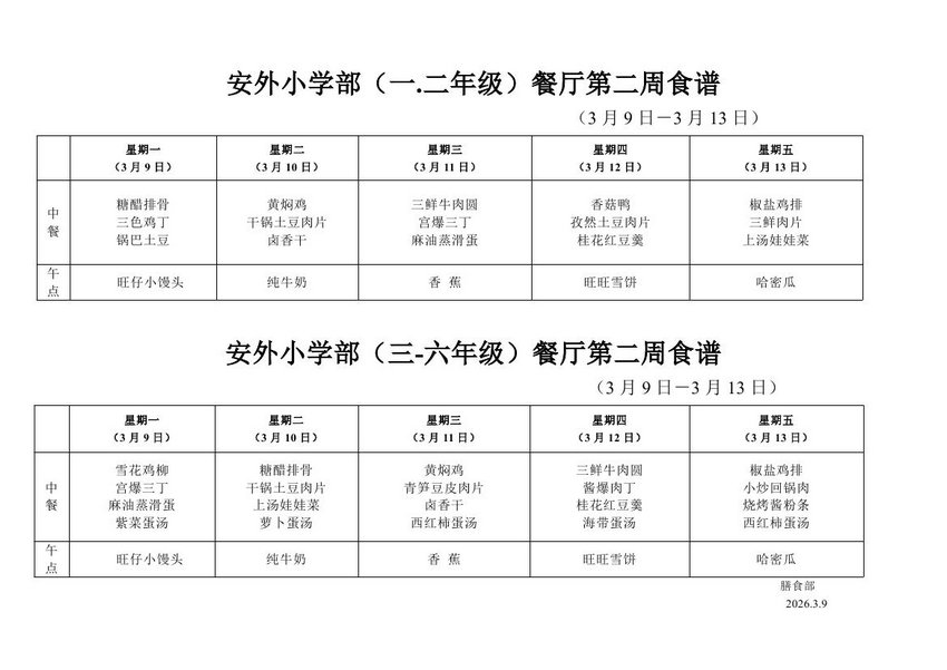 2025-2026学年度第二学期第二周食谱