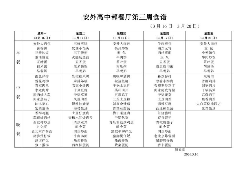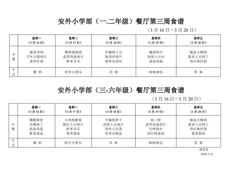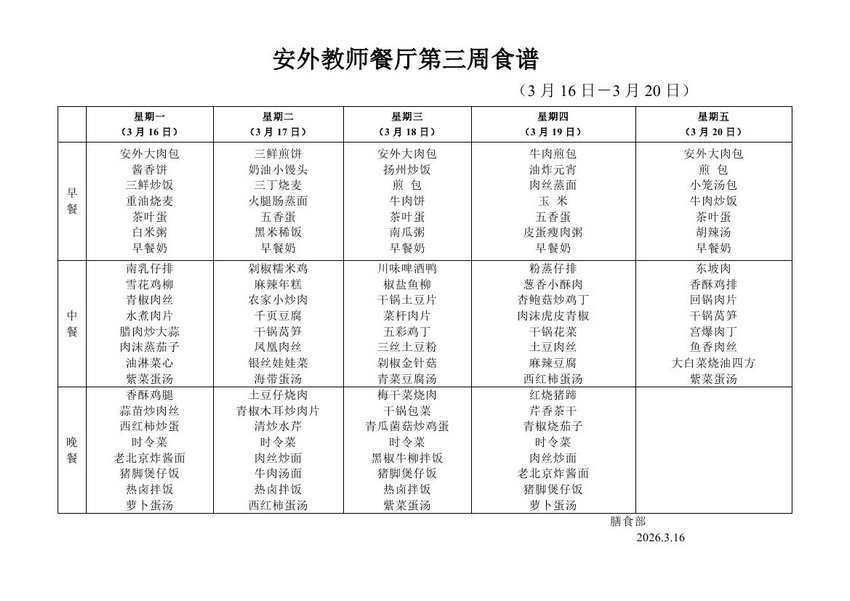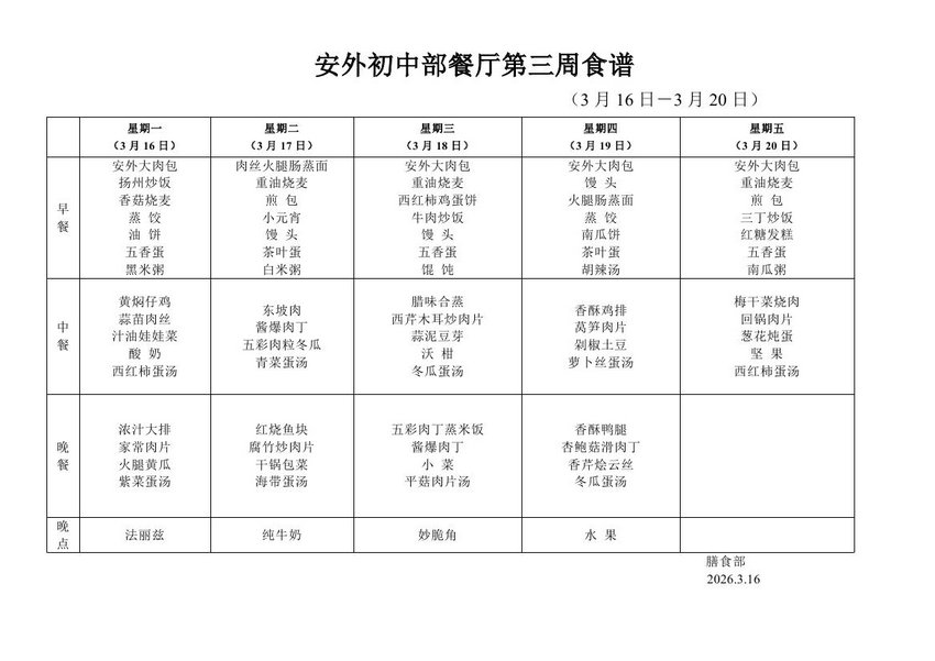 2025-2026学年度第二学期第三周食谱
